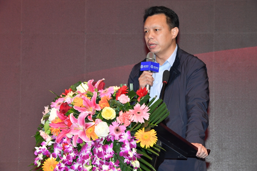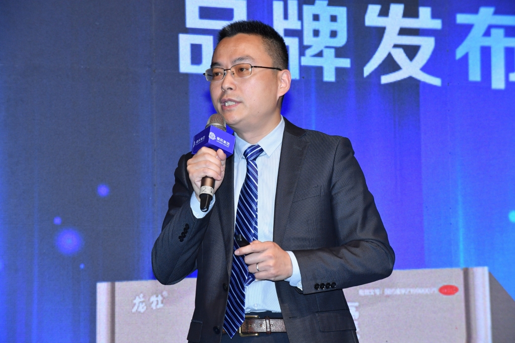 健民集团北湖销售公司总经理杨军在现场隆重发布龙牡®牌便通胶囊和健民咽喉片。