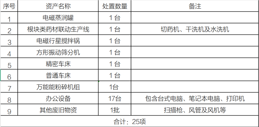 竞价丨健民集团叶开泰国药旧设备处理项目信息公告